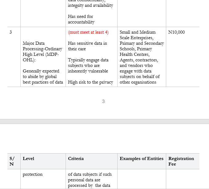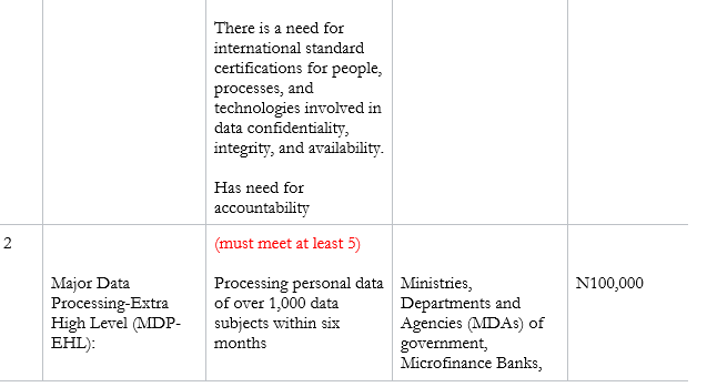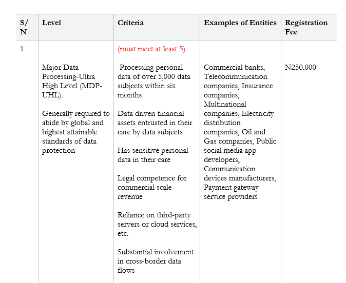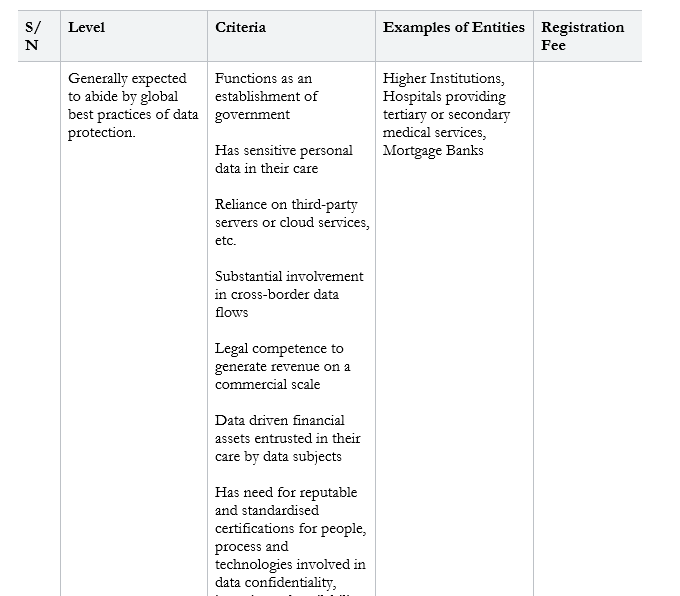 For the purpose of registration, data controllers and processors of major significance are further classified into 3 levels: